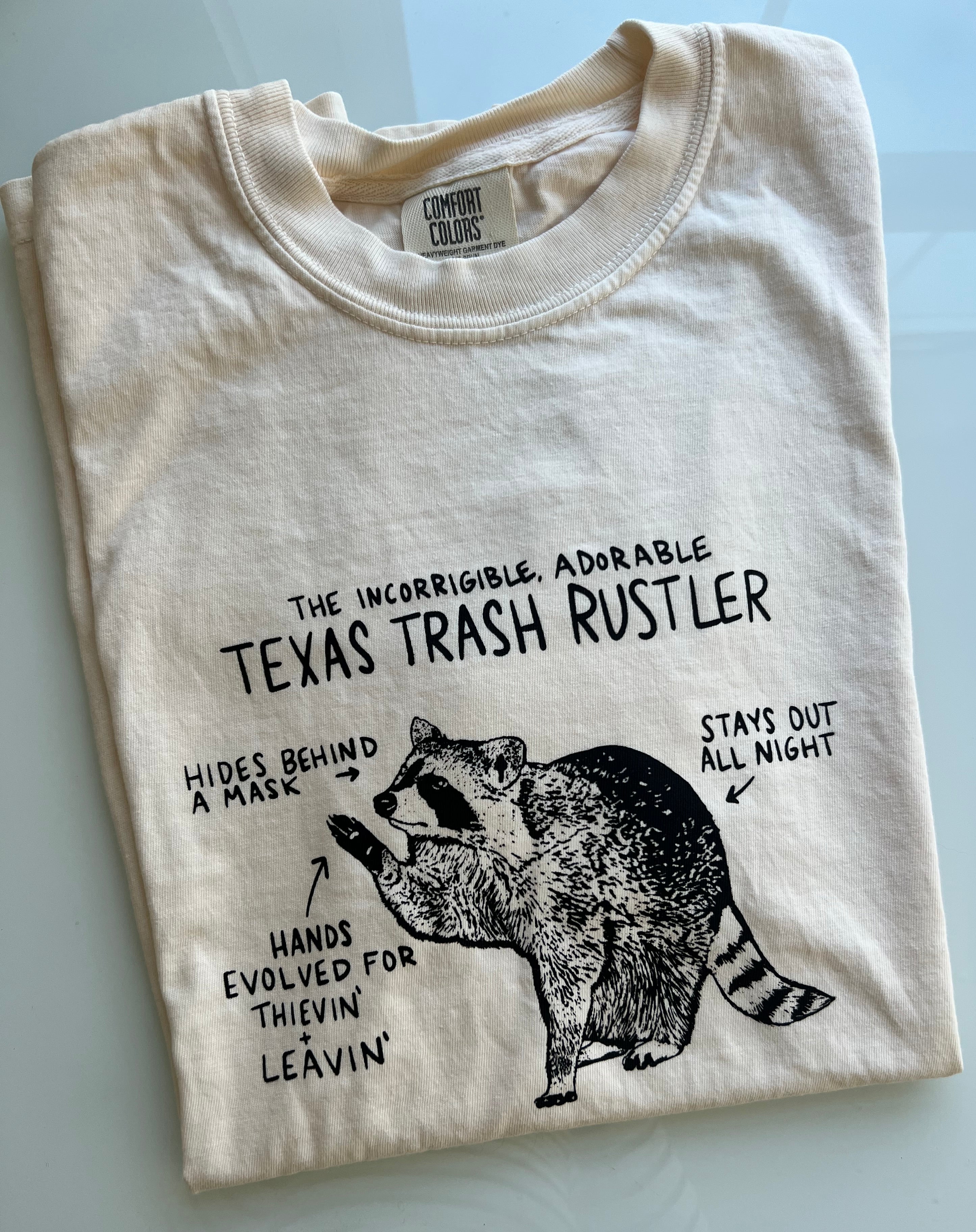 The Incorrigible Texas Trash Rustler. What an adorable and mischievous nighttime visitor! This is the perfect gift for anyone who loves these smart, curious little critters.